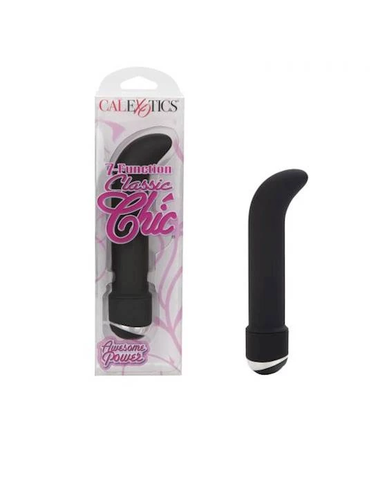 The 7-Function Classic Chic Mini “G” Vibe is a new take on the classic CalExotics G-spot vibrator. With the same awesome power and the same smooth, velvety shaft design, this vibe turns up the heat with a curved tip to give you the ultimate G-spot stimulation!