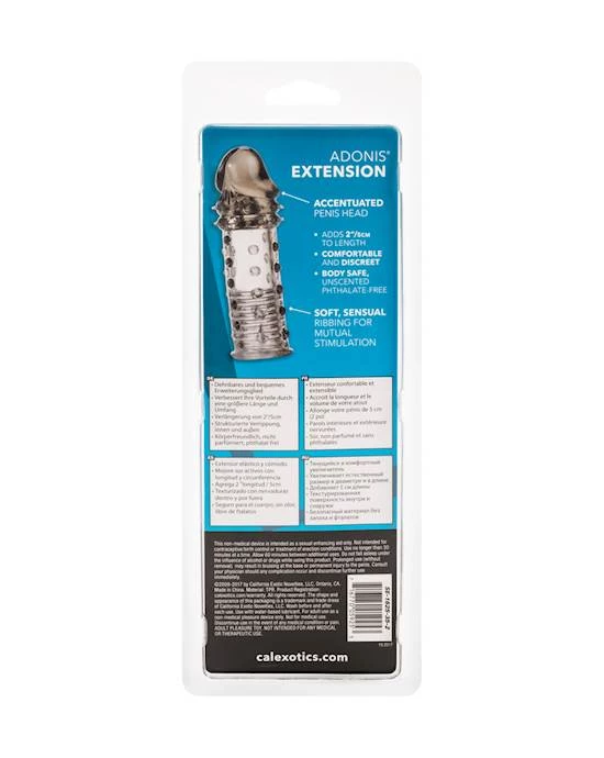 Providemore sensual pleasure with the Adonis Extension. The translucent erection enhancer is designed for maximized ecstasy, super-sized dimensions and mutual stimulation satisfaction. Slip on the enhancer and instantly add a full 2”/5 cm to length, to deliver unforgettable enjoyment and create more excitement in the bedrooom. The easy to use enhancer is ideal for first time and experienced users, and is great for spontaneous seduction that goes on and on.