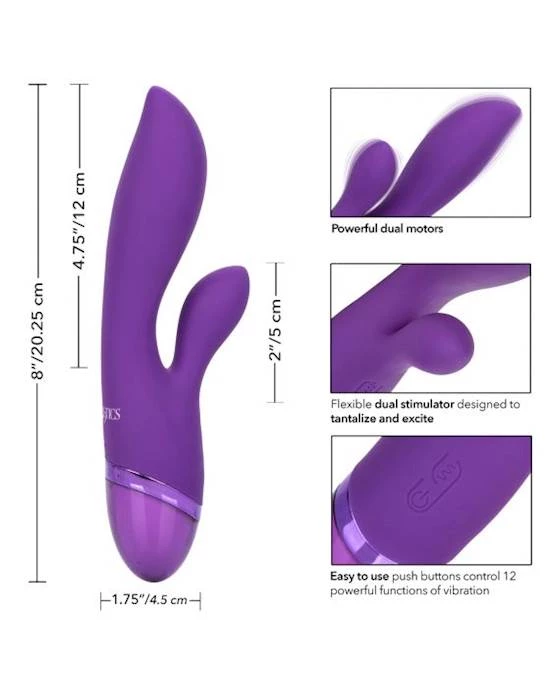 Awake your inner desires with the Aura Dual Lover, a powerfully playful dual stimulator vibrator. This intensely powerful rabbit vibe has 2 intense vibration motors, pulsating teaser and 12 powerful functions of vibration. Send high-intensity pleasure radiating throughout your body with the two powerfully stimulating motors.