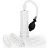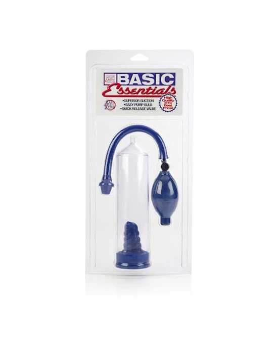 the basic essentials pump is the perfect toy for penis enhancement! the roomy cylinder comes clearly marked with measurements as well as a ribbed latex sleeve, easy-to-use pump bulb, and quick release valve. whether you are simply enjoying the amazing sucking sensations of the vacuum, or you are looking to get ready for action by pumping a larger, harder erection, this pump is the way to go for amazing results and incredible stimulation!