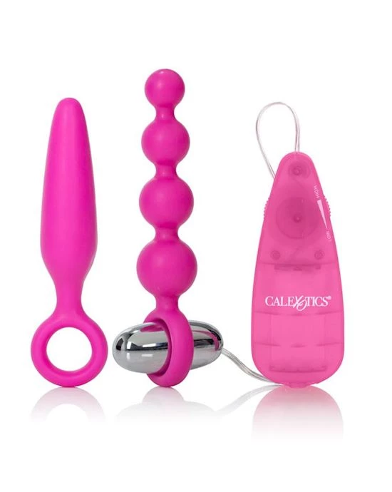 Get 3 toys in 1 and have triple the fun with the Booty Call Booty Vibro Kit; a sleek, fun and pleasurable kit for lovers or single users designed in a flirtatiously style. This fantastic trio of products is totally versatile, and each can be used individually, or they can be used together to maximize stimulation and erotic massage in various areas of the body. Joining forces, the kit brings you a smooth 3.75โ long and 1โ wide probe, a set of 4.5โ long and 1.25โ wide pleasure beads with graduating sizes, plus a 2โ long and 1โ wide stimulator bullet with multi-speed vibrations. Together, all 3 can give you the time of your life across all erogenous zones while the kit can be disassembled, and each element can be used individually.