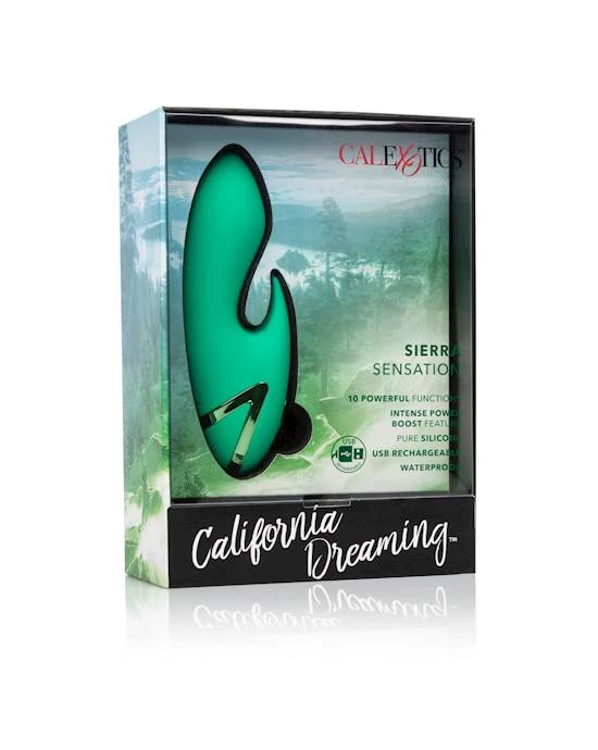 Powerful, compact, and with dual stimulators, the California Dreaming Sierra Sensation is a must have vibe. Featuring 10 functions of intense vibration, this vibrator creates mind blowing sensations and reverberations, escalating your orgasmic pleasures to the next level. The dual stimulators keeps you ticking over, bringing you to orgasmic ecstasy.