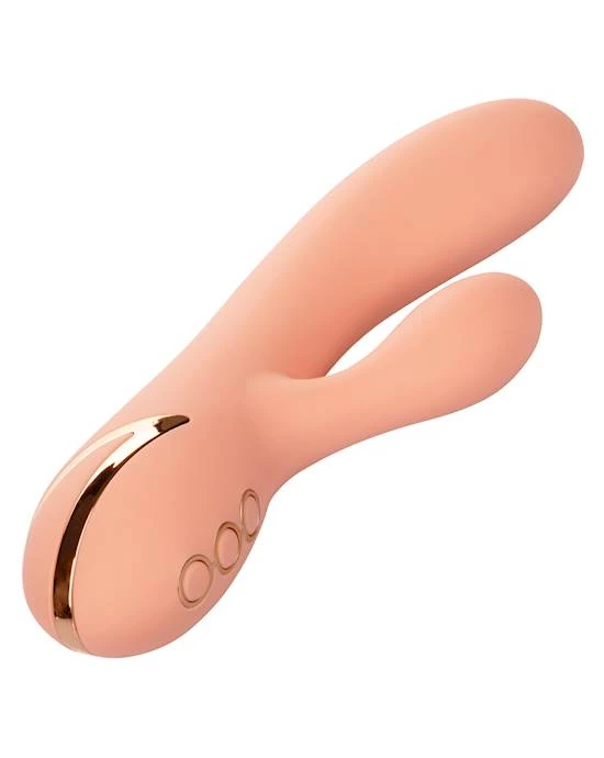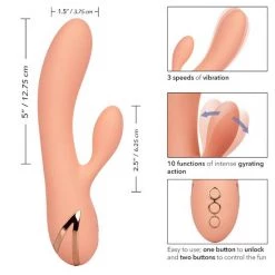 Liberally lubricate intended area of insertion with your favourite water-based lubricant. Once well lubricated, slowly insert the rabbit vibrator’s shaft and place the “ears” onto the clitoris. Power on and have fun exploring the 10-functions.