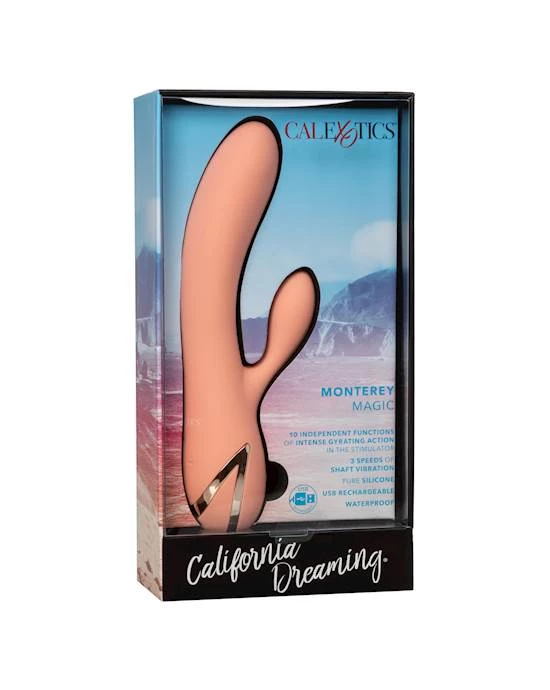 The California Dreaming Monterey Magic has incredibly intense vibrating action in the stimulator, 10-functions of gyrating motion in the stimulator makes sure that you are never left wanting more. 3 speeds of independent shaft vibration allow you to experience the maximum in pleasure sensation with the operation of just two buttons (one controlling the stimulator, the other for the shaft). A third button controls the power, with an included three-second-press travel lock, preventing accidental discoveries of your favourite adult toy.