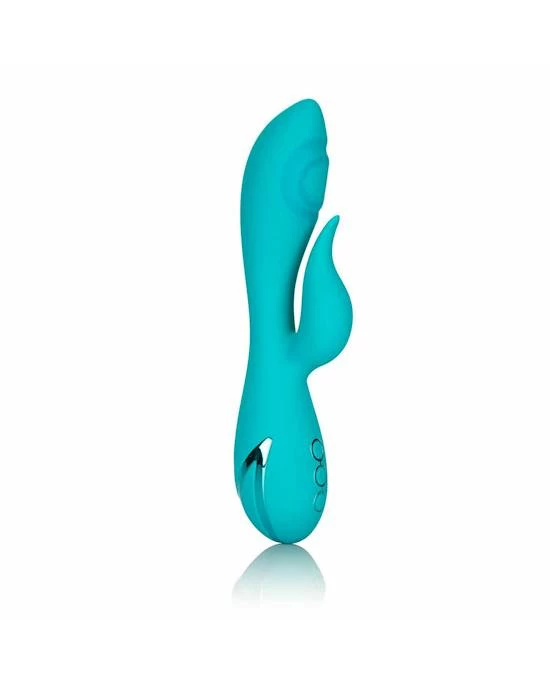 While the flickering stimulator teases, the tapered shaft and curved tip delivers intense thumping stimulation. The curved tip uses a powerful pounding sensation for intense g-spot stimulation. The teasing tickler uses a powerful vibration motor to deliver blissful external stimulation. The flexible teaser can be used independently from the thumping function for fully customizable pleasure.