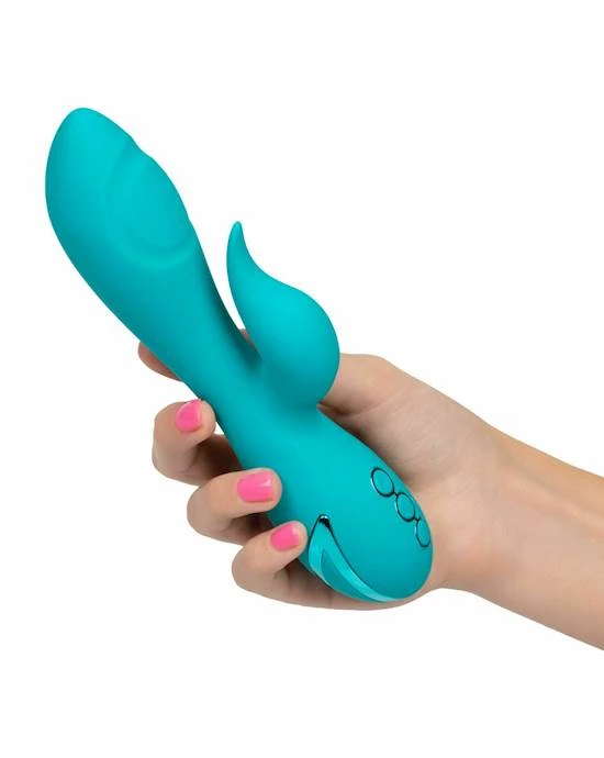 The playful California Dreaming Collection brings star-studded fantasies to life with the passionate Santa Monica Starlet. The ergonomically designed massager is ready to ready for those A-List fantasies with 10 poweful functions of vibration and 3 knee-shaking thumping pulation speeds.
