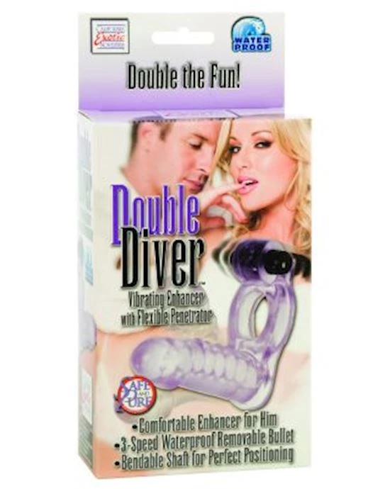 the double diver enhancer provides ample support for him, with powerful vibrations for her. the flexible penetrator has a bendable shaft for perfect for anal stimulation. attached at the top of the base is a 3 speed wireless bullet vibrator to tease the clitoris. the enhancer and vibrator are both waterproof, so you can take it anywhere!