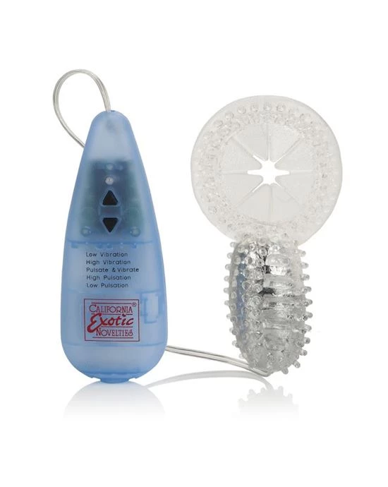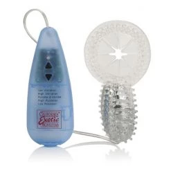 The stimulator features an ABS bullet shaped vibrating stimulator that is powered up via the easy to use, hand-held durable controller. The multi-purpose vibrating bullet comes with two removable super soft, phthalate-free TPR sleeves. Both are sensually textured with tantalizing pleasure ticklers. The ring is designed to be used on the penis during sex while the other can be sure for extreme foreplay.