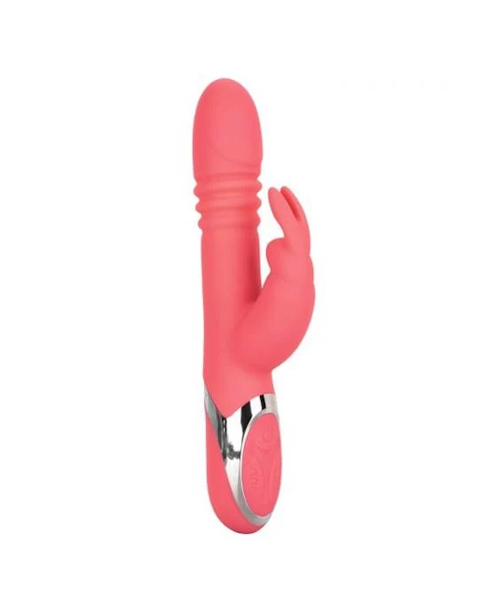 Bring a little magic to your bedroom with the Enchanted Exciter. Transport yourself to a wonderland of pleasure with 4 functions of shaft rotation, 4 functions of thrusting action, and 12 indulgent vibration functions. The flexible shaft and flickering bunny tickler flex and move with your body to deliver intense G-spot and clitoral stimulation.
