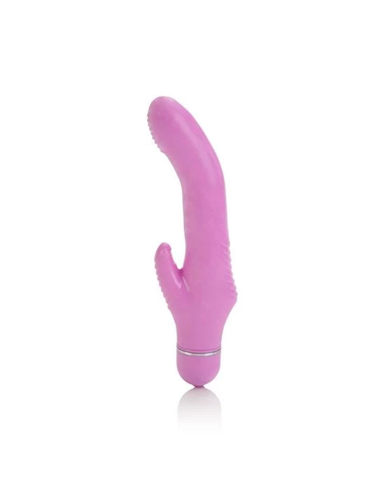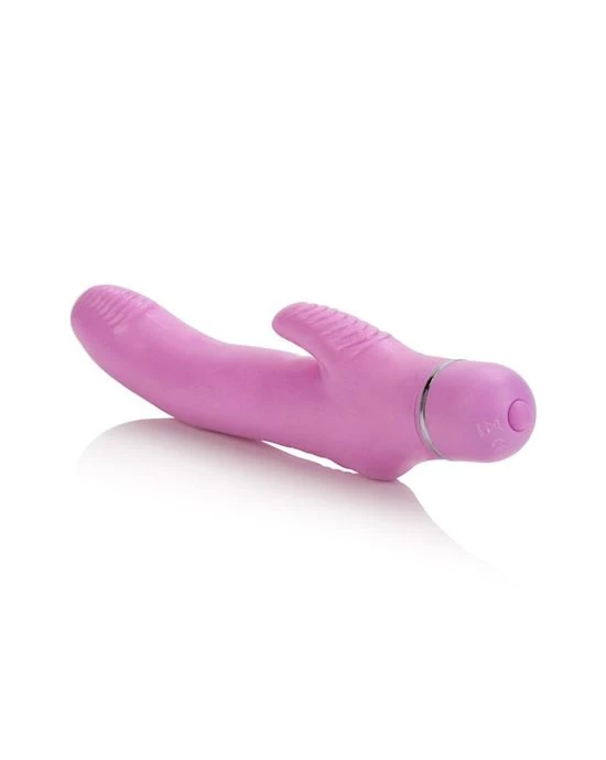 The massager measures a discreet and compact 5” x 1”/12.75 cm x 2.5 cm. It has a flexi shaft with ripples of pleasure ridges on the rounded tip, clitoral teaser, and base of the shaft. The powerful 2-speed motions are controlled by easy push button selection, located in the end cap. The smooth, plushy soft vibe is powered by 2 AAA batteries and is suitable for massaging and stimulating all areas of the body, as well as intimate insertion pleasure.