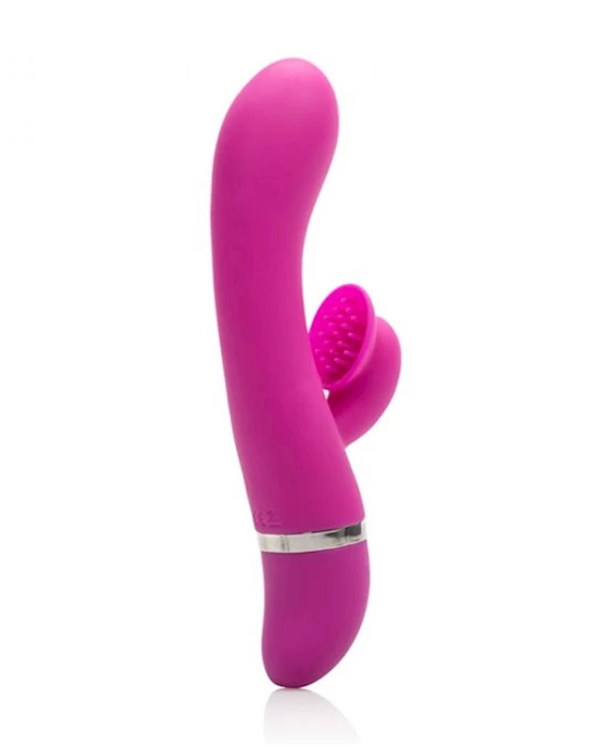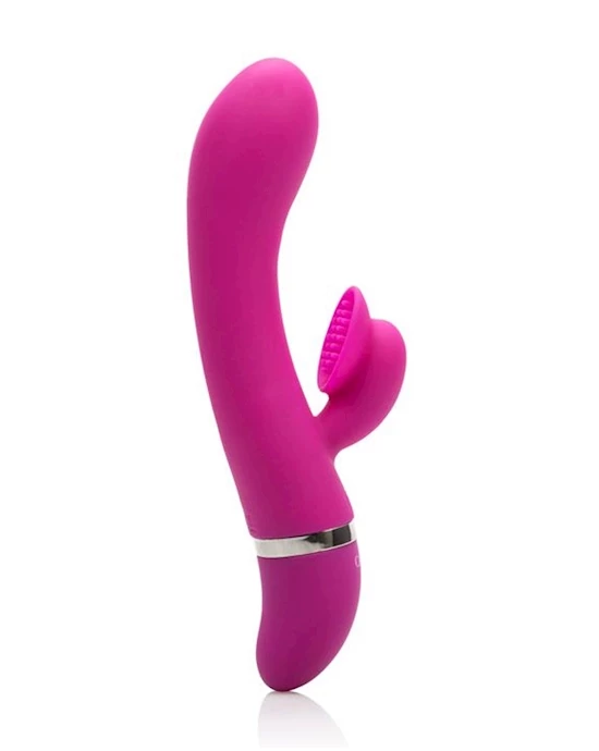 Enjoy unlimited tantalizing pleasure with the power-packed Foreplay Frenzy Bunny stimulator. The erotically contoured vibe is contoured for ultimate comfort, extended reach and flexible movement with your body, and features a curved accentuated G-spot precision tip, and an ergonomically shaped clitoral teaser scoop with tantalizing ticklers.