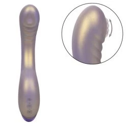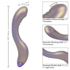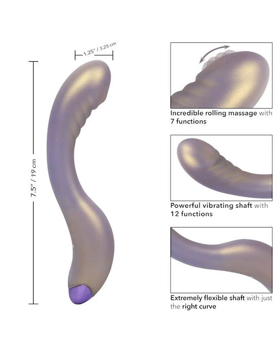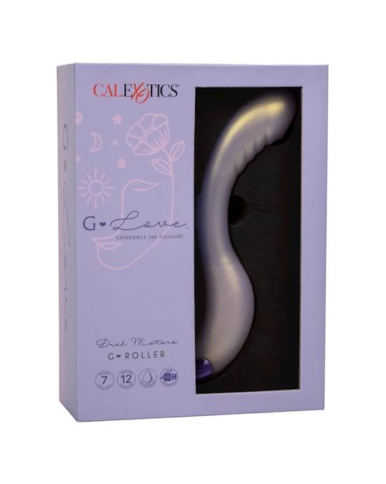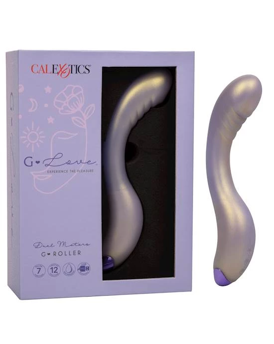 The gorgeous G-Love G-Roller is a dual stimulating massager with vibrating shaft and rolling tip stimulator. Love yourself just right with the flexible G shaft, 7 independent functions of roller ball action and 12 independent functions of vibrations. The rolling teaser tip and sensually curved shaft are perfect for teasing internal and external sweet spots. For an ultra smooth surface and flexible body, the curved stimulator and massager are covered in a shimmering Silicone