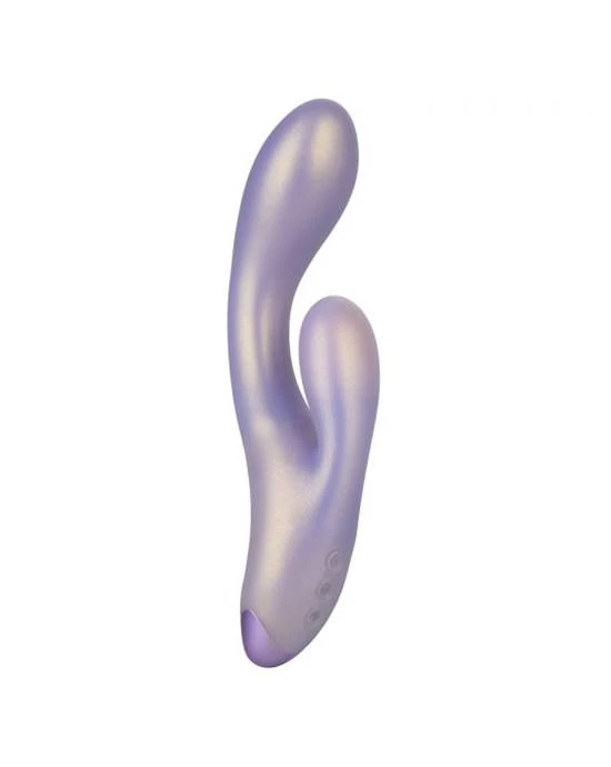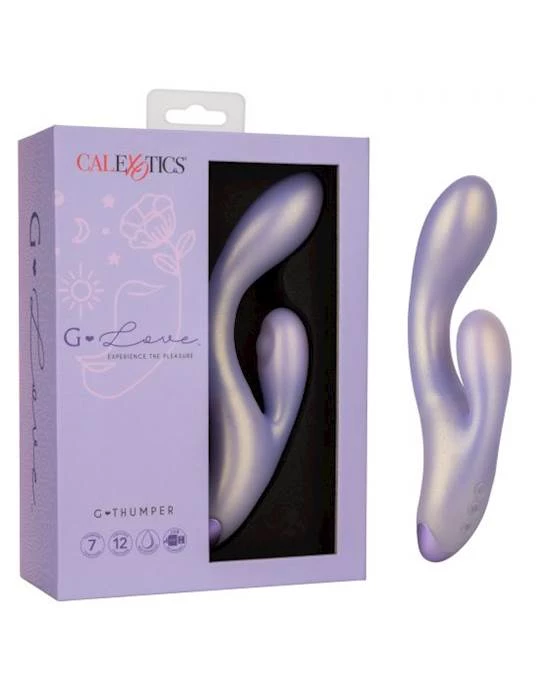 The gorgeous G-Love G-Thumper is a dual stimulating massager with vibrating shaft and thumping pulsation stimulator. Love yourself just right with the flexible G shaft, 7 independent functions of thumping action and 12 independent functions of vibrations. The thumping teaser tip and sensually curved shaft are perfect for teasing internal and external sweet spots. For an ultra smooth surface and flexible body, the curved stimulator and massager are covered in a shimmering Silicone.