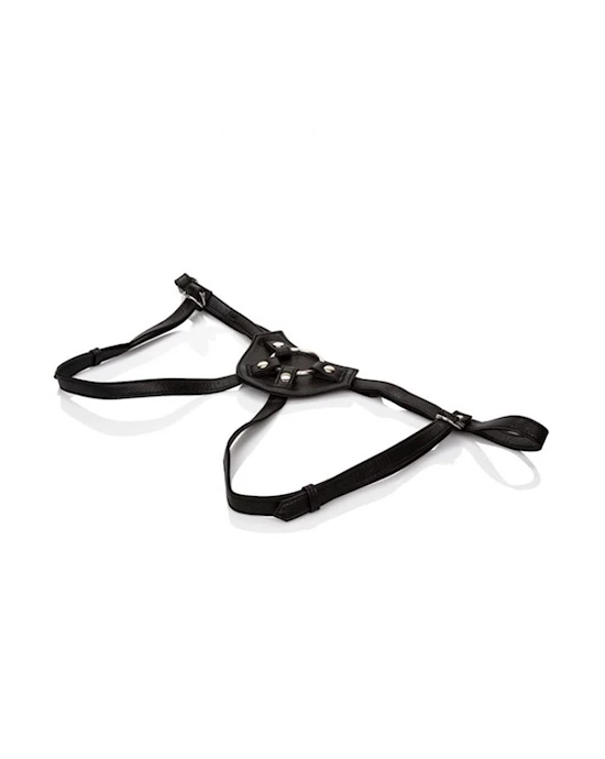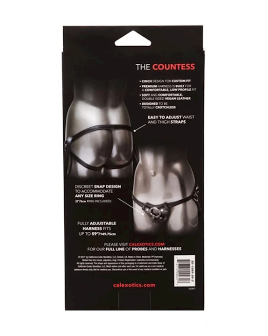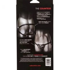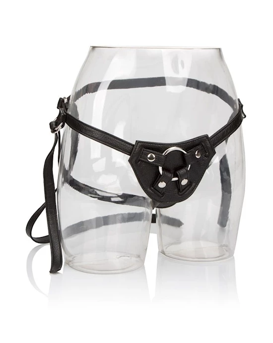 The fully adjustable waist fits up to a 59” Waist (149.75 cm) and the interchangeable O-ring accommodates most probes and strap-on dildos with a diameter of 2” (5 cm).