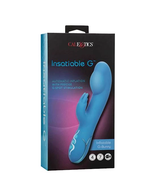 The Insatiable G Inflatable G-Bunny precisely targets the g-spot with an added tickler included. This automatic inflating wand is an adult toy geared towards the body type that needs a flickering sensation in addition to the exceptional vibration and inflation options and will be sure to stimulate each part of your body that it comes in contact with. Containing a whopping four unique inflatable settings of slight, medium, and high inflation and a special feature of pulsating inflation, along with the combined 7 different vibration settings. All of this excitement is controlled by a three-button controller that will bring you to bliss.