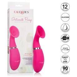 Sensually stimulate with the tickling and teasing Intimate Pump Rechargeable Climaxer Pump. With a soft intimate scoop, teasing ticklers and 12 synchronized vibration and suction functions, this lustful massager will send you spiraling into a wonderland of pleasure possibilities.