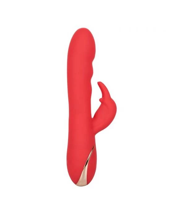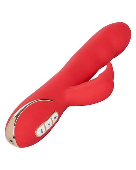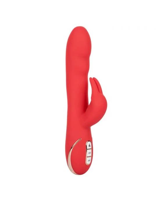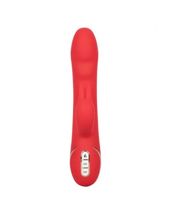 After over 30 years of pleasure, the Jack Rabbit has crafted their most luxurious vibrator yet. The Heated Silicone Ultra-Soft Rabbit is a premium Ultra-Soft silicone vibe with 7 independent functions of shaft and teaser vibrations and a one-of-a-kind heated element. The ravishing rabbit and shaft independently flicker to the rhythm of 7 thrilling functions vibration to tease, please and tantalize. This one-of-a-kind rabbit knows how to turn the heat up in the bedroom with a unique heating element that reaches a maximum soothing temperature in just 4 minutes. Use the independently controlled heating element to get things hot and heavy at the touch of a button.