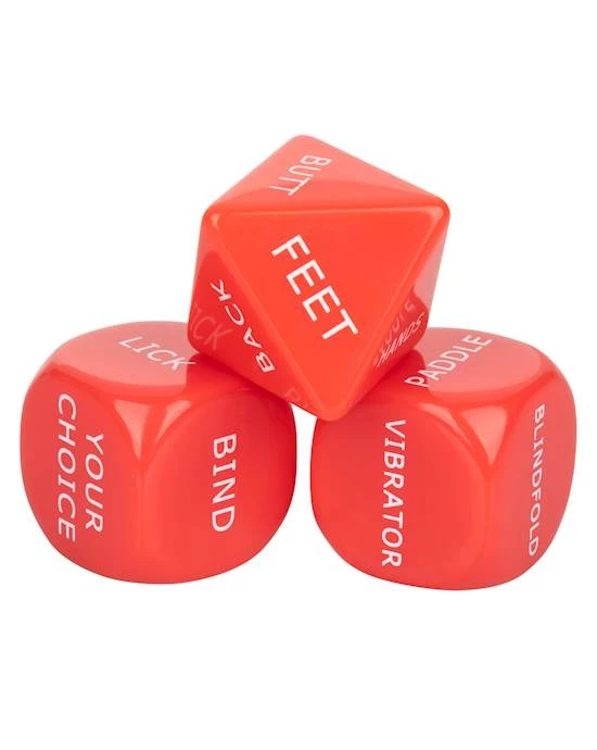 To play, simply roll the dice to see what to do, where to do it and what to use. There are no losers in this game, each round of this seductive game works to tease, please and always end with each player in a state of pure bliss. Each set includes 3 acrylic dice.