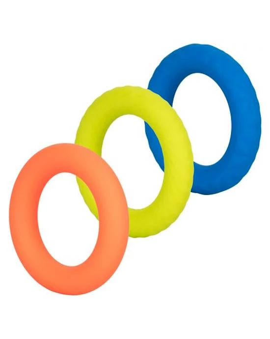 From bashful beginners to erotic experts, the Link Up Ultra-Soft Climax Set will wrap you up tight in pleasure with a set of 3 ultra-plush, ultra-stretchy enhancer rings. Each cock ring in this set has a unique texture, one smooth, one ridged and another rippled, for a sensational experience with every wear.