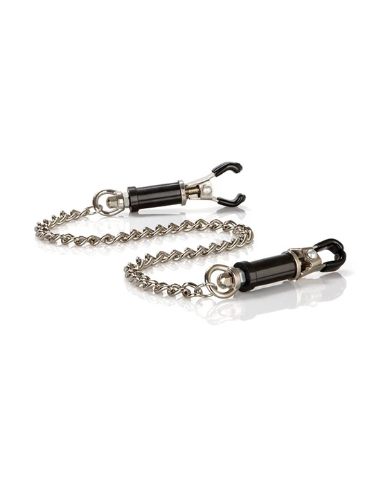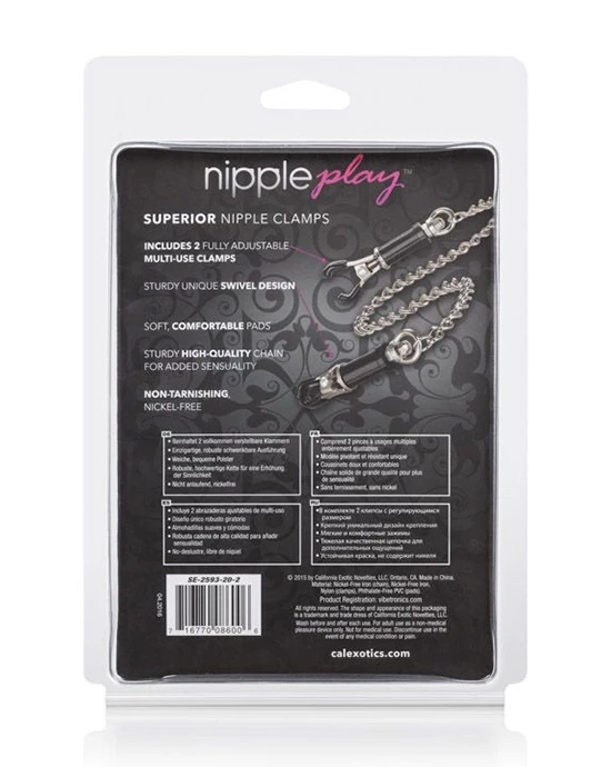 Squeeze, tantalize and please with the Nipple Play Superior Nipple Clamps. The fully adjustable, easy to use nipple clamps are comfortable to wear and perfect for erotic exploration. The superior quality mini nipple clamps are suitable for his and her orgasmic pleasure and perfect for exotic fetish play.