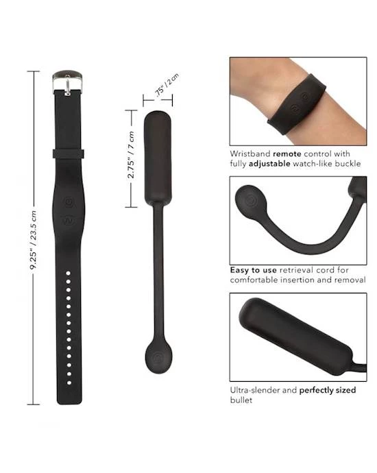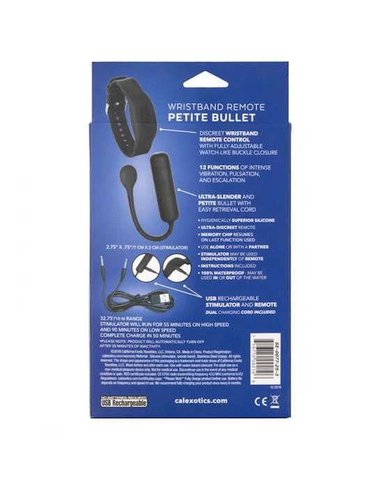 The Wristband Remote Petite Bullet is a powerfully mini vibrator paired with a playfully discreet wristband controller for adventurous pleasure seekers. The stylish, yet discreet wristband controller makes it easy for you or your lover to control vibration intensity with the touch of a button. Whenever or wherever passion takes you, this passionate panty vibrator’s 32.5-foot radius range and 12 intense functions of vibration are ready for playtime.