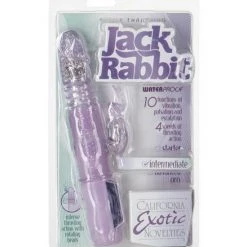 Petite Jack Rabbit with incredible thrusting and rotating power. Rabbit has 10 intense functions of vibration, pulsation and escalation. 4 patterns of synchronous rotating and thrusting action. 3 solid rows of non-jamming rotating beads. Easy push-button controls with auto off Level: Intermediate.