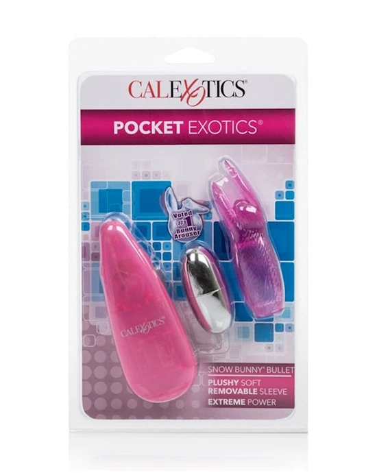 Voted the #1 Bunny Arouser, Pocket Exotics Snow Bunny Bullet comes in a playful pink as sensual as the vibrating experience it creates. This high-intensity vibrating bullet with removable, dual-action bunny teaser comes with a multi-speed power pack and plenty of sleek style. It’s as safe as it is sensually satisfying and exciting too, with a bunny crafted of TPE, a controller of PP, and the bullet itself of pure ABS with silver plating.