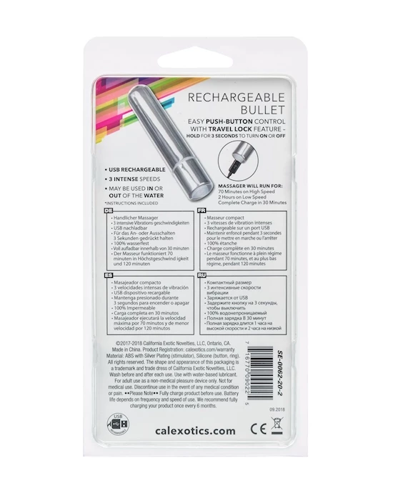 Recharge the metallic intimate massager in 30 minutes with the provided USB charging cable to enjoy 70 minutes of high-speed stimulation or 2 hours of low speed vibrations.