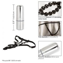Tease and tantalize external sweet spots with the thrilling stroker beads, sexy cheeky harness design and powerful 3-speed bullet massager. The rechargeable bullet can be used independently from the stroker panties for mind-blowing stimulation. The ravishing roller beads are designed to hug your most intimate curves for sensational couples stimulation. The pleasure beads give her tantalizing external stimulation and he will adore the intense shaft stroking pleasure.
