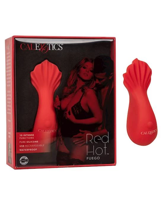 The Red Hot Fuego is sure to light a fire in your love life with the seductive textured scoop and 10 powerful vibration functions. The compact travel size, 100% play area and unique flexible tip make for a blazing good time. The textured scalloped tip and plush contoured body passionately caresses your sensual sweet spots. The curved scoop and compact size deliver pinpoint pleasure, anywhere you go.