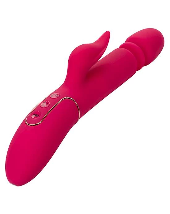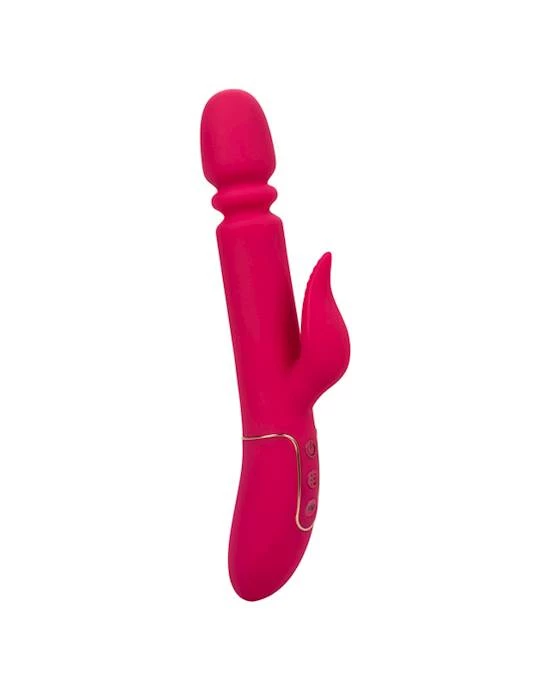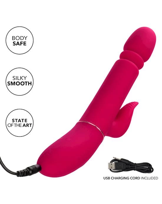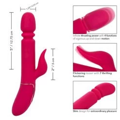 There is no shame in this game! Experience all the thrusting pleasure you crave with this Charmer. It features 4 functions of vigorous up-and-down motion and is made with body-safe silicone that feels amazing on the skin. Not only does this massager thrust, it also vibrates with 7 different functions to choose from. The teaser flickers to hit all your hot spots. Plus, the thruster and vibrator are controlled independent, so you can customize the fun any way you like it.
