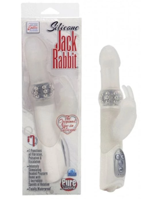 Our all time best selling Jack Rabbit is now made with superior Silicone! Intensely stimulating pleasure dome with 6 columns of reversible, non-jamming, rotating beads. 3 incredible speeds of shaft rotation. Vibrating rabbit with 7 powerful functions of vibration, pulsation, and escalation. Requires 3 AA batteries, not included.