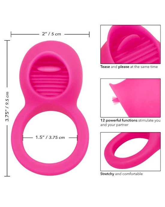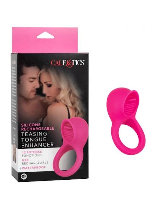 The Silicone Rechargeable Teasing Tongue Enhancer uses the perfect mix of 12 functions of vibration with a flickering teaser ring to deliver double the knee-shaking pleasure. The stretchy stimulator ring is made to intensify pleasure for both beginners and erotic experts alike!