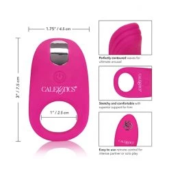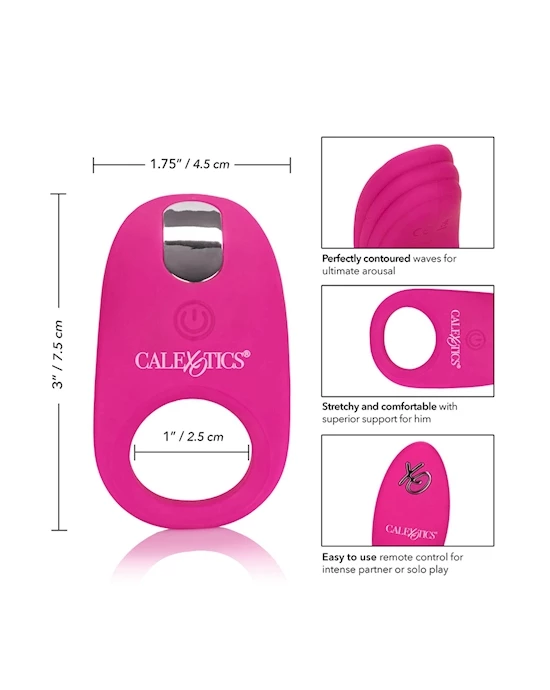 The luxurious silicone ring works to increase girth, maximize stamina and intensify pleasure with every moment. The intimately designed stimulator pinpoints passionate vibrations on intimate sweet spots and will increase in intensity throughout your next steamy romp with or without the remote control.
