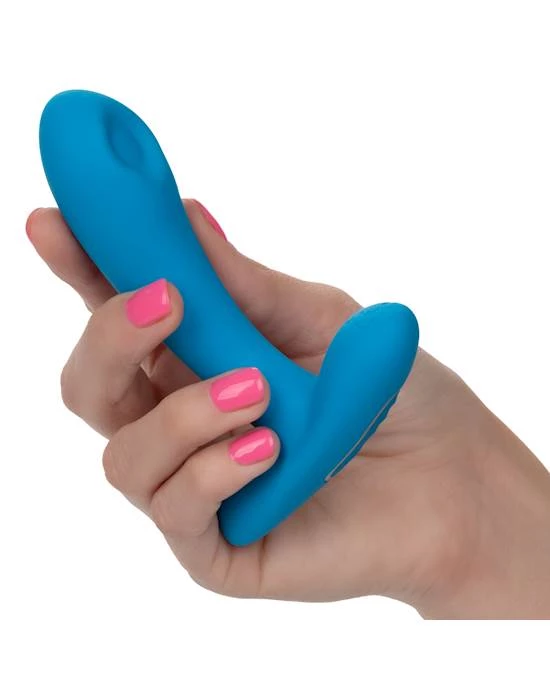 The Silicone Remote Pulsing Pleaser is the intimately curved teaser of your dreams. The sleek probe has a powerful pulsating tip, sensually curved design, and 12 functions of thumping made to thrill with every teasing touch.
