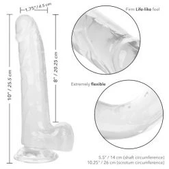 Deliver the pleasure you’ve been craving with an 8-inch long dong with helmet-top, textured shaft, and life-like balls. The textured shaft has multi-directional positioning sure to deliver a truly realistic penetration experience. The flanged base has a sturdy suction cup that can be used in a harness or mounted to a flat surface for sensation hands-free fun.