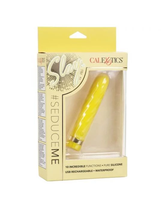 Slip the sensual Slay #SeduceMe into your purse or handbag for knee-shaking pleasure wherever you go. The mini bullet massager fits between your fingers to let you deliver pinpoint tantalization and thrill with sensually ribbed vibrations. Get playful while you flicker through 10 indulgent vibration, pulsation and escalation functions with the easy-touch control button. Effortlessly control pure pleasure with an easy-touch silicone button and hold for 3 seconds to turn on or off.