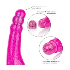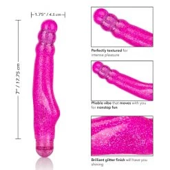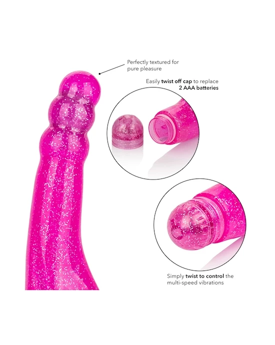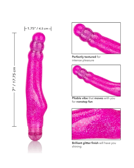 The vibe is made from phthalate free TPR and ABS plastic, and is waterproof making it the ideal playmate to take with you in the water! With its brilliant glitter finish and powerful multi-speed vibrations, this vibe has it all.