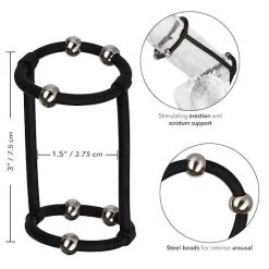 Made to enhance, escalate and intensify ecstasy every time you slip on the Steel Beaded Silicone Enhancer Cage. The sturdy, yet stretchy silicone dual enhancer cage supports, while the moveable steel pleasure beads thrill you and your lover.