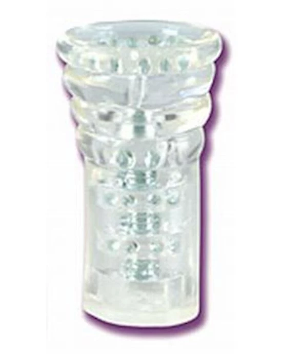 this silicone jelly masturbator is endorsed by sue johanson. its tight stretchy feel and 3 suction cavities is perfect for some first rate cock stimulation.