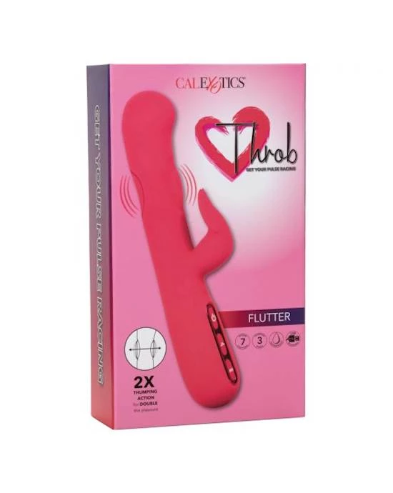 With 2 times the powerful thumping action, the thrilling Throb Flutter is made to get your pulse racing. This powerful dual stimulator massager has 2 uniquely placed thumping pads on both sides of the shaft to deliver 3 speeds of deep, rumbling thumping. A full coverage stimulator is made for knee-shaking stimulation as it shimmies to the rhythm of 7 intense functions of vibration. Embrace fully personalized pleasure with the independently controlled 3 speeds of thrilling thumping action and 7 functions of vibration.