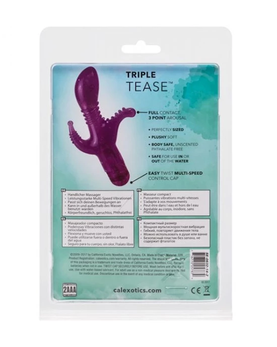 Have your cake and eat it too, with the CalExotics Triple Tease Vibes range. These vibrators feature several sexy stimulators for the whole orgasm experience! This three-way vibrating stimulator is the whole package in one tiny parcel!