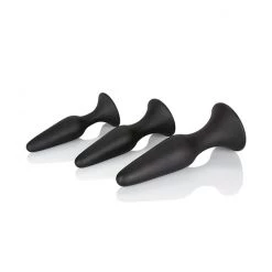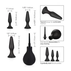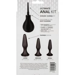 Open the door of thrilling anal sensation with the Ultimate Anal Kit. This kinky kit includes a set of 3 graduated anal plugs and a large enema bulb to let you safely and comfortably enjoy passionate anal stimulation. To enjoy everything the exhilarating world of anal play has to offer, training is needed in order to ensure total safety and satisfaction. Our tapered silicone plugs allow you to gently increase the size of your pleasure as you tease and train.