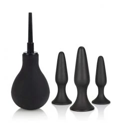 Open the door of thrilling anal sensation with the Ultimate Anal Kit. This kinky kit includes a set of 3 graduated anal plugs and a large enema bulb to let you safely and comfortably enjoy passionate anal stimulation. To enjoy everything the exhilarating world of anal play has to offer, training is needed in order to ensure total safety and satisfaction. Our tapered silicone plugs allow you to gently increase the size of your pleasure as you tease and train.