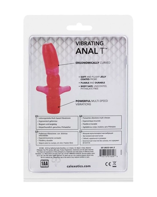 Enjoy tantalizing orgasmic tingles and intense satisfaction with the Vibrating Anal T. The soft and pliable, contoured jelly vibe is designed for ultimate anal exploration and ultimate pleasure. Tease, please and massage your ultra-sensitive zone with this multi-speed power-packed penetrator.