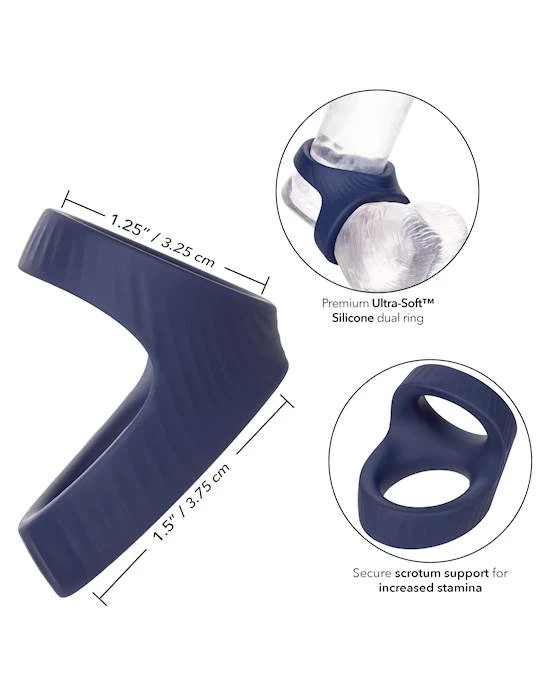 The premium Ultra-Soft silicone is body safe, unscented and phthalate free to keep you most sensitive spots, happy and healthy. The premium dual cock ring has a ring 1 diameter of 1.25” (3.25 cm) and a ring 2 diameter of 1.5” (3.75 cm)