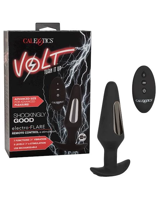 Electrify the senses with the thrilling Volt Electro-Flare. The remote-control electro-stimulation probe massager is packed with 5 independent functions of e-stim levels and 7 functions of vibration for electrifying pleasure. The sleek tapered plug is made to flex with your movements, while the plump body delivers advanced size pleasure.
