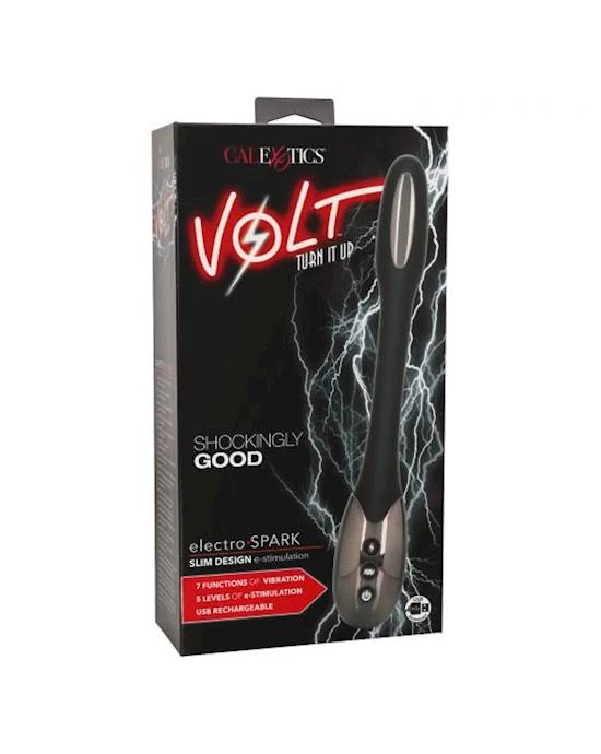 Electrify the senses with the thrilling Volt Electro-Spark. This uniquely flexible electro-stimulation massager is packed with 5 independent functions of e-stim levels and 7 functions of vibration for electrifying pleasure. The slim and flexible wand can be bent into almost any position to deliver pulsating stimulation from any sensational angle.