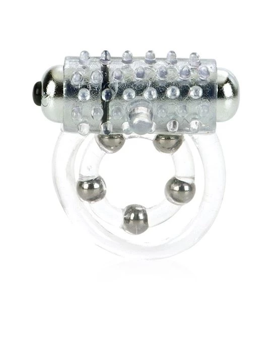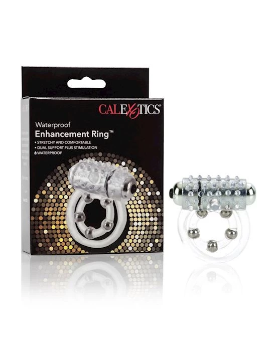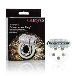 The erection enhancer measures a compact 2.5”x 2”/6 cm x 5 cm and is made from transparent, flexible phthalate-free TPR. The ultra supple and stretchy enhancer ring features double support rings with stimulation beads for him and an erotically textured clitoral stimulation sleeve for her pleasure. The textured sleeve accommodates the removable ABS with silver plating micro stimulator and delivers intensely satisfying ecstasy.
