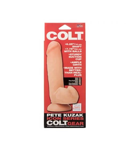 Part of the COLT Icon Series, the Pete Kuzak cock is crafted with Better-Than-Real Plus material that’s hand finished and colored for exacting detail as smooth as it is sexy. A sturdy suction cup base and phthalate-free, pliable TPR construction means safe and stimulating fantasies come true. So go ahead and indulge your every whim.